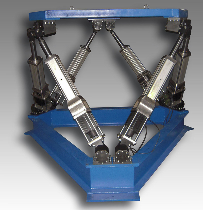 廣泛應用到各種訓練模擬器如飛行模擬器、艦艇模擬器、海軍直升機起降模擬平臺、坦克模擬器、汽車駕駛模擬器、火車駕駛模擬器、地震模擬器以及動感電影、娛樂設備等領域,甚至可用到空間宇宙飛船的對接,空中加油機的加油對接中。在加工業可制成六軸聯動機床、靈巧機器人等。由于六自由度運動平臺的研制,涉及機械、液壓、電氣、控制、計算機、傳感器,空間運動數學模型、實時信號傳輸處理、圖形顯示、動態仿真等等一系列高科技領域,因而六自由度運動平臺的研制變成了高等院校、研究院所在液壓和控制領域水平的標志性象征。